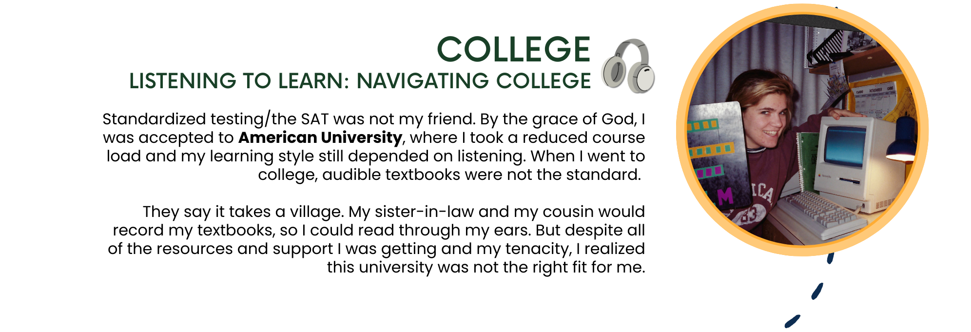 My path highlights the power of combining tailored support with personal determination, from my first steps in preschool at Kindercare to discovering supportive educational environments.